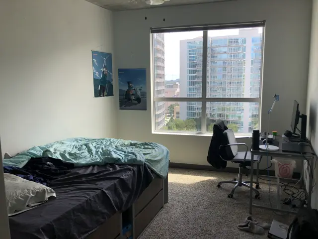 A good view, a large, spacious room, a huge full XL bed in comparison to the fairly cramped twin XL dorm room standards. My own bathroom, with my own shower! Our own laundry machine next to our own little kitchen and living room, I could go on and on. The biggest benefit might just be stability: I could stay here for the rest of college if I wanted, while campus housing was not guaranteed and would make me move every year. And with stability comes a real sense of ownership, and with ownership a sense of control over one's living.